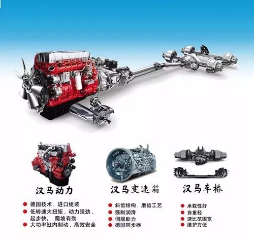 動力鏈采用自主研發(fā)的鉆石動力鏈--漢馬發(fā)動機+漢馬變速箱+漢馬車橋,從整車匹配上做到了*。