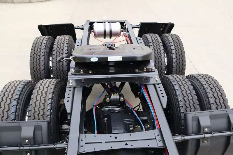 配置10mm車架。該車架采用變截面魚腹式結(jié)構(gòu),前低后高、前寬后窄,有效提高了車輛的行駛穩(wěn)定性。